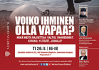 Kansa vapaaksi sääntö-Suomen pykäläviidakosta. Taksiliikenne vapaaksi kilpailulle. Kansalainen vapaaksi valtion tuella. Vapaaksi tuppukylän ahdasmielisyydestä urbaaniin riippumattomuuteen. Vapaaksi kaupungin ruuhkista mökkimaiseman rauhaan. Vapaaksi kirkon vallasta yksilölliseen uskoon. Vapaaksi paikan rajoituksista virtuaalimaailmaan. Sekalaiset vaatimukset vapaudesta ovat äänekkäitä ja niitä on paljon. Mutta mitä vapaus täsmälleen ottaen merkitsee ja miten vapaaksi tullaan? Voiko vapaalle ihmiselle esittää vaatimuksia tai velvollisuuksia? Kuka niitä saisi esittää? Isä, äiti, valtio, ystävät, kirkko, Jumala vai yksikään mainituista? Ovatko velvollisuudet ristiriidassa vapauden kanssa? Vai voiko vaatimuksia täyttämällä vapaus jopa kasvaa? Entä miten tavat ymmärtää vapaus vaikuttavat yhteiskuntaan laajemminkin, esimerkiksi kansalaisjärjestöjen, uskontojen tai politiikan kautta? Veritas Forum-tilaisuudessa Itä-Suomen yliopistossa Joensuussa näistä aiheista keskustelevat kirjailija ja kolmen yliopiston dosentti Jari Ehrnrooth sekä professori Serafim Seppälä. Ehrnrooth on aktiivinen yhteiskunnallinen keskustelija ja on juuri julkaissut kirjan Kymmenen vaatimusta vapaalle ihmiselle (Otava). Seppälä on vapaaehtoisesti sitoutunut ortodoksikirkon munkin elämään ja puolestaan kirjoittanut teoksen Vapaus (Kirjapaja), joka voitti vuonna 2007 Vuoden kristillinen kirja -palkinnon. Keskustelua moderoi professori Ilkka Huhta. Tapahtumaan on ilmainen sisäänpääsy. Loppuun on varattu aikaa yleisökysymyksille ja tilaisuuden jälkeen tarjotaan kahvit. Tilaisuuden järjestävät Karjalan teologinen seura, Joensuun OPKO ja Joensuun Evankeliset Opiskelijat. Tapahtuma-aika ja -paikka: keskiviikkona 26.11. klo 16-18, Carelian auditorio C2, Itä-Suomen yliopisto Joensuussa. Ohessa linkki tilaisuuden facebook-tapahtumaan: https://www.facebook.com/events/527759928005500/