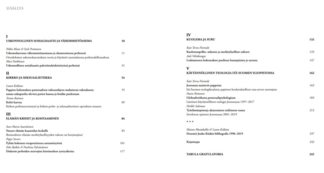 "Juhlakirjaan sisältyy yhteensä 12 artikkelia. Niissä käsitellään uskonnollista sosialisaatiota ja vähemmistöasemaa, seksuaalietiikkaa, elämän kriisejä sekä kuolemaa ja surua. Lisäksi kirjassa paneudutaan käytännölliseen teologiaan oppiaineena sekä työelämään liittyviin kysymyksiin."